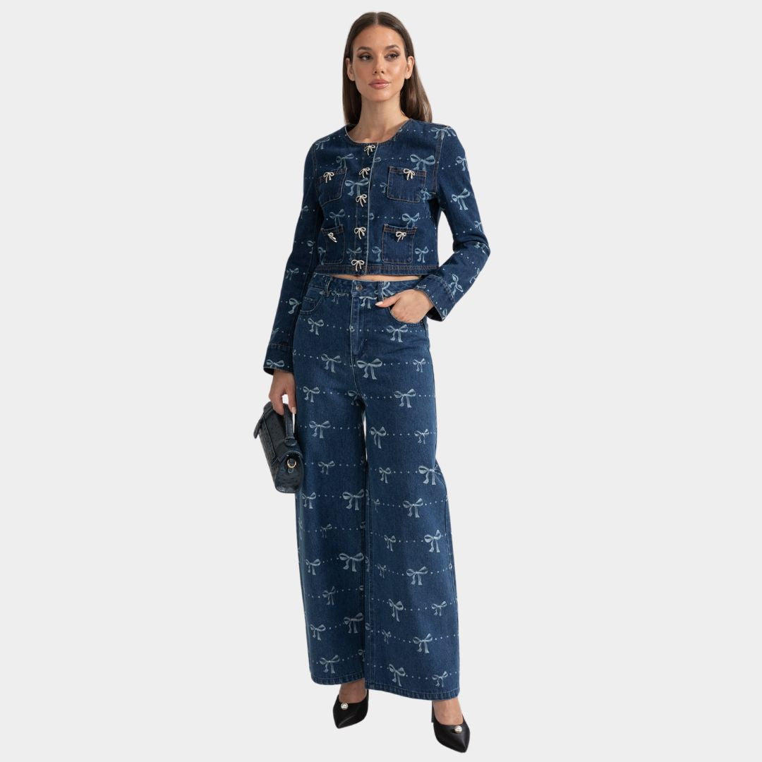 Lilou | Zweiteiler aus Denim mit Schleifenmuster für Frauen