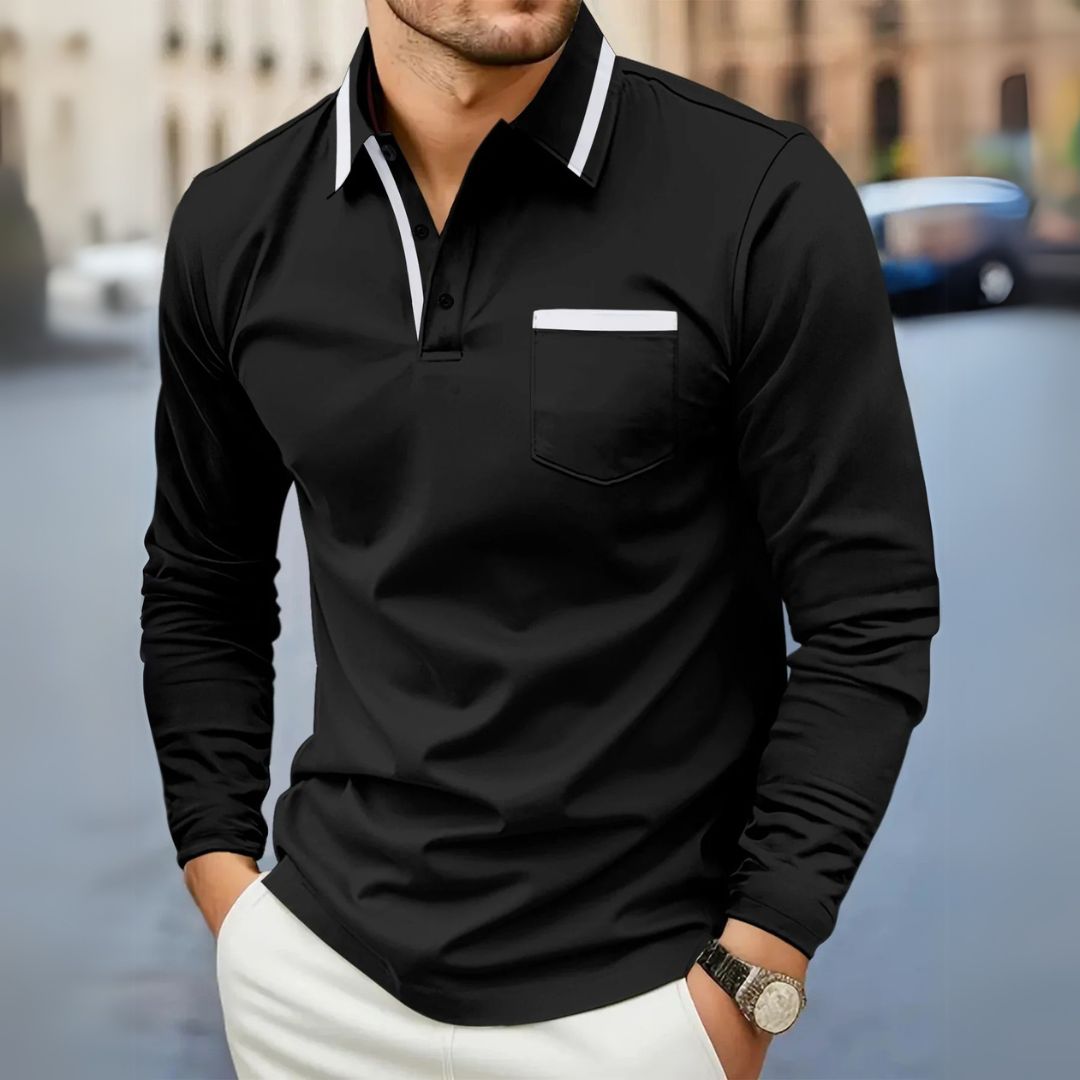 Leonard | Langarm-Poloshirt mit Kontrastdetails für Männer
