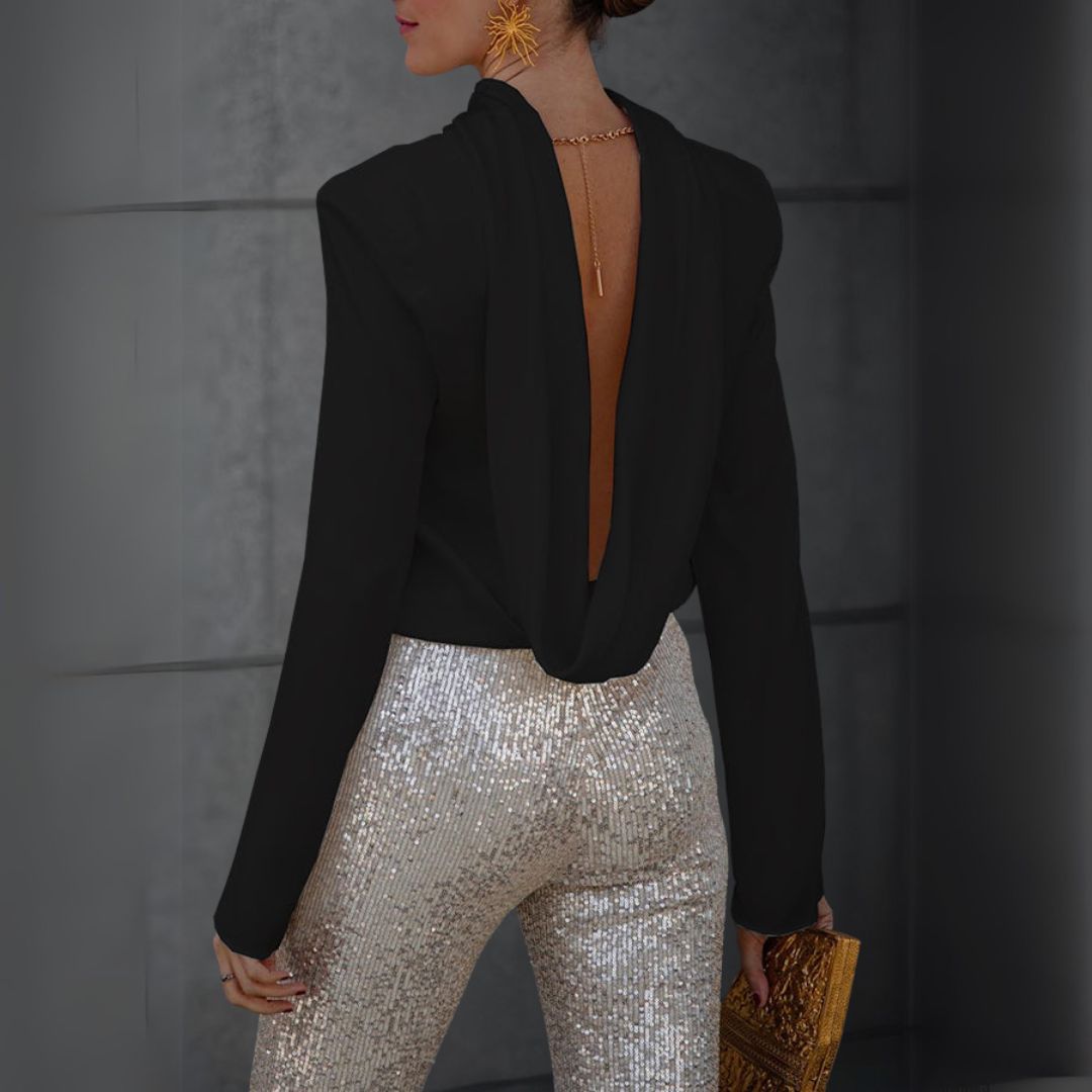 Alisa | Rückenfreies Langarm-Top mit Drapierung für Frauen
