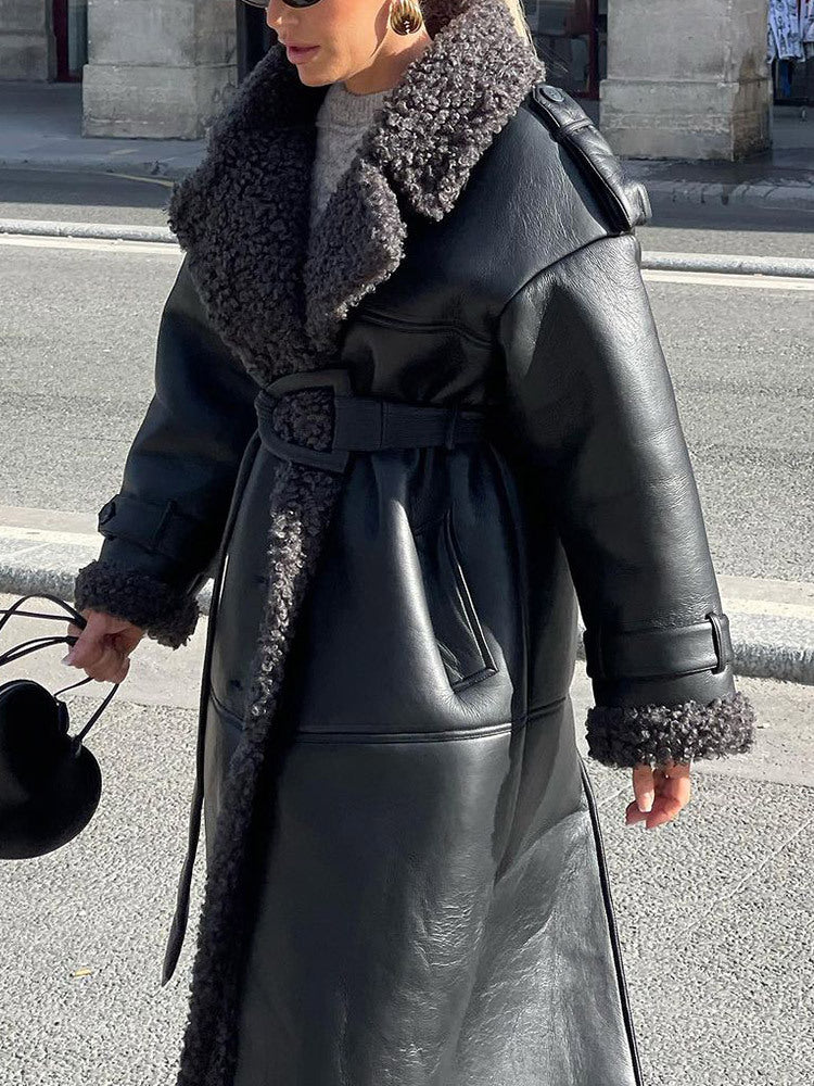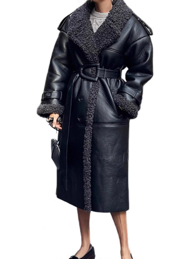 Hinterlassen Sie einen bleibenden Eindruck mit dem Patchwork Luxe Langmantel | Léa, der Sie während der kälteren Monate stilvoll und warm hält. Dieser Mantel verfügt über ein luxuriöses Kunstleder-Äußeres, das mit weichen Fellakzenten für einen eleganten Look ergänzt wird. Mit einem hohen Kragen und einem verstellbaren Taillengürtel bietet er sowohl eine raffinierte Passform als auch außergewöhnlichen Komfort. Das lange, dicke Design sorgt für Wärme an frischen Herbst- und Wintertagen und verströmt gleichzeitig einen schicken, trendigen Flair. Ob Sie einen gemütlichen Spaziergang genießen oder sich für einen Abend mit Freunden fertig machen, dieser Mantel ist der perfekte Begleiter, um ein modisches Statement zu setzen.